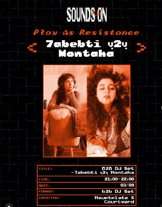 Two DJs with Egyptian roots come together for a special b2b set exploring the intersections of bass music and Arabic sounds. Montaha and 7abebti blend experimental club rhythms with influences from the Arab musical world, creating a set shaped by heritage and identity.